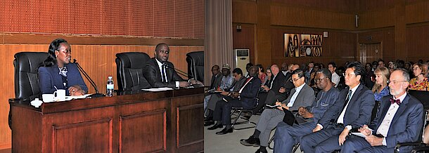Kigali, 02 August 2019 - The Minister of State in the Ministry of Foreign Affairs, Amb. Olivier Nduhungirehe, the Minister of Health Dr. Diane Gashumba and World Health Organization (WHO) country representative Dr Kasonde Mwinga briefed members of the Diplomatic Corps based in Kigali on Ebola and Rwanda's preparedness to contain Ebola outbreak.