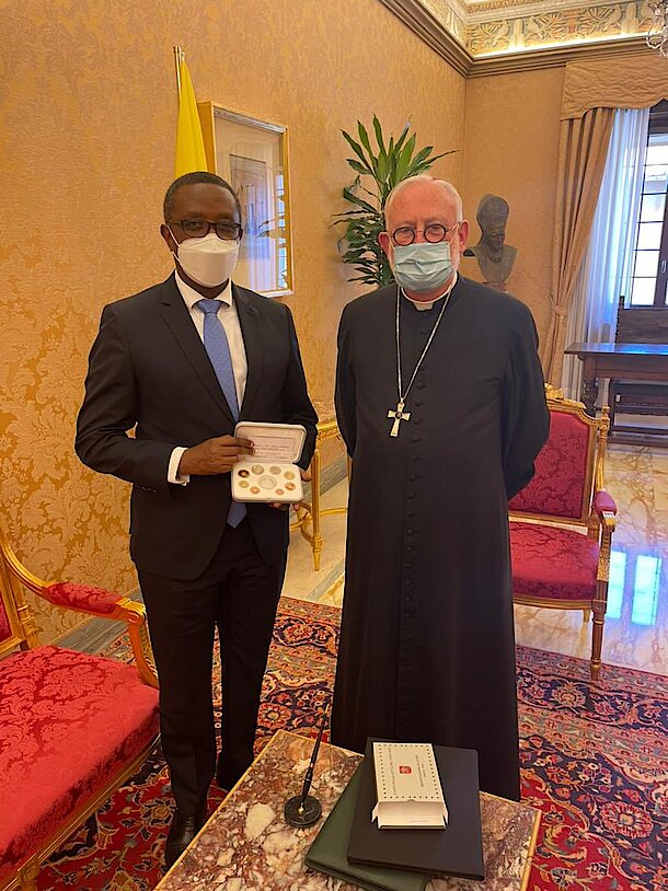 On 30 June 2021, Minister Vincent Biruta was received by Archbishop Paul Gallagher, Secretary for Relations with States at the Holy See's Secretariat of State. The two discussed ways to strengthen cooperation between Rwanda and the Catholic Church.