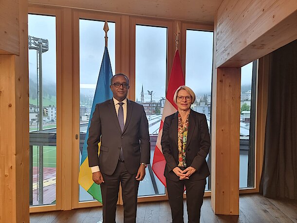 Minister Biruta met with Ms. Livia Leu, State Secretary of Swiss Federal Department of Foreign Affairs, on the sidelines of the 2022 World Economic Forum annual meeting, happening in Davos, Switzerland. They discussed strengthening bilateral relationships between Rwanda and Switzerland.