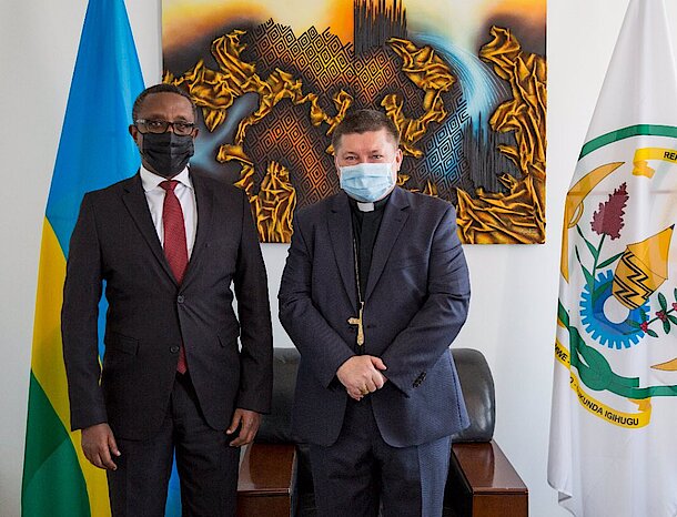 On 23 July 2021, Minister Vincent Biruta received Mgr. Andrzej Jozwowicz, Apostolic Nuncio to Rwanda, who has reached the end of his tenure. The two exchanged on bilateral relations between the Government of Rwanda and the Vatican.
