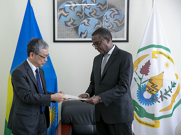 Kigali, 19 December 2022 – Rwanda’s Minister of Foreign Affairs and International Cooperation, Dr. Vincent Biruta received copies of credentials of Mr. Isao Fukushima, Ambassador- Designate of Japan to Rwanda.