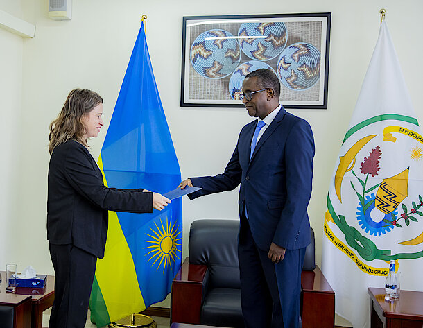Kigali, 16 August 2023 - Minister Vincent Biruta received copies of the Letters of Credence of Ms. Einat Weiss, Ambassador-designate of the State of Israel to Rwanda.