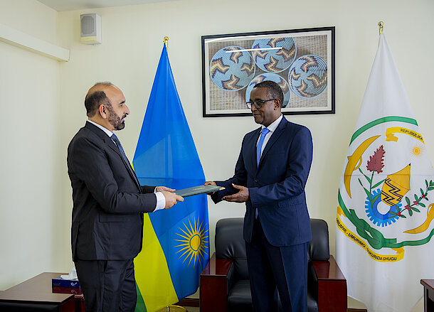 Kigali, 16 August 2023 - Minister Vincent Biruta received copies of the Letters of Credence of Mr. Naeem Ullah Khan, High Commissioner-designate of Pakistan to Rwanda.