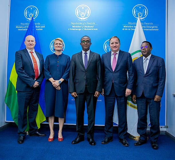 Kigali, 6 September 2023 - Minister Vincent Biruta received Mr. Stefan Löfven, the former Prime Minister of Sweden and the current Chair of the Governing Board of Stockholm International Peace Research Institute (SIPRI), and his delegation. The meeting explored possible areas of cooperation.