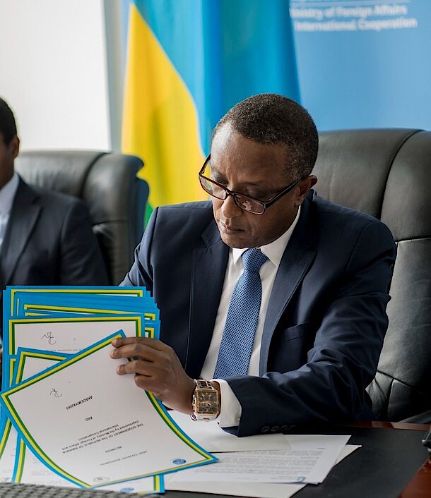 Minister Biruta signs a host country agreement with Akademia 2063