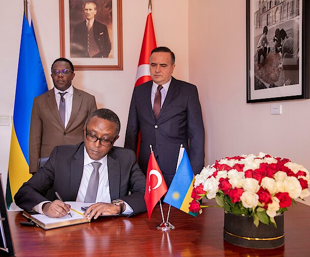 Kigali, 10 February 2023 – On behalf the Government of Rwanda, Rwanda’s Minister of Foreign Affairs and International Cooperation signed the condolences book at the Turkish Embassy in Kigali in the wake of the recent tragic earthquakes. Rwanda stands in solidarity with the Government and people of Türkiye.