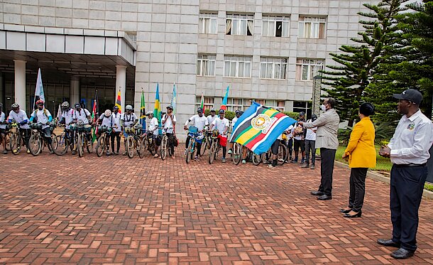 Minister of State Prof. Manasseh Nshuti flagged off the 5th Edition of the Great Cycling Africa. Through this initiative, 35 cyclists from all the East African Partner States are riding across the borders through the capitals of the EAC Partner States to promote regional integration.