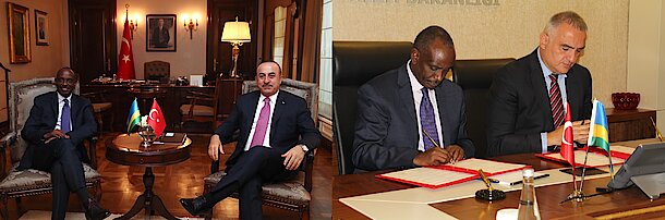 Foreign Minister Sezibera held bilateral dialogue with Mevlüt Çavuşoğlu, Minister of Foreign Affairs of Turkey on 24 June 2019. During the meetings, the two Ministers signed the Memorandum of Understanding on Diplomatic Training and the Agreement Concerning Visa Waiver for Holders of Diplomatic and Service Passports. The two Ministers also held a joint press conference.