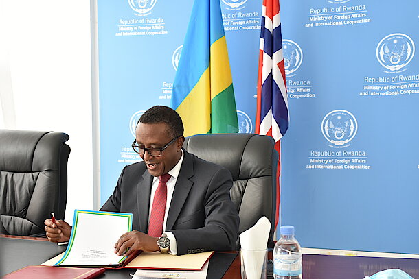 Minister Vincent Biruta and his counterpart from Norway, sign an MoU on Political Consultations