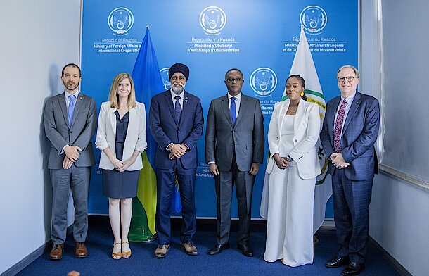 Kigali, 18 July 2023 - Minister Vincent Biruta received Mr. Harjit Sajjan, Canada’s Minister of International Development and Pacific Economic Development, and his delegation, who are in Rwanda to attend the Women Deliver Conference 2023. They discussed further strengthening bilateral relations between Rwanda and Canada.