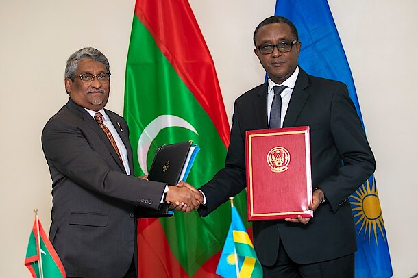 Minister Vincent Biruta met Ahmed Khaleel, Minister of State for Foreign Affairs of Maldives. Discussions focused on strengthening bilateral cooperation. Five agreements namely: General Cooperation, Air services, Tourism, Agriculture and Maritime transport were signed.