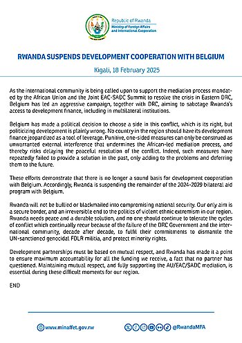 RWANDA SUSPENDS DEVELOPMENT COOPERATION WITH BELGIUM