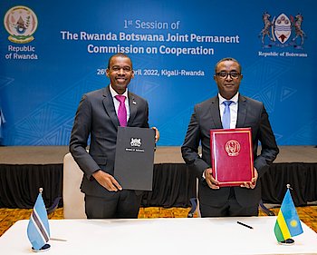 Minister Vincent Biruta and Hon. Dr. Lemogang Kwape, Minister of International Affairs and Cooperation of the Republic of Botswana led their…