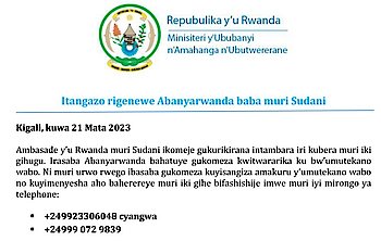 ITANGAZO RIGENEWE ABANYARWANDA BABA MURI SUDANI