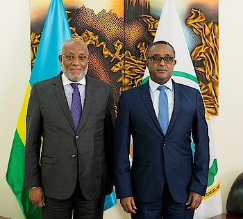 Février 14, 2022- Le Ministre Vincent Biruta a rencontré Antoine Thomas Nicéphore Fylla Saint-Eudes, Ministre du développement industriel et de la…